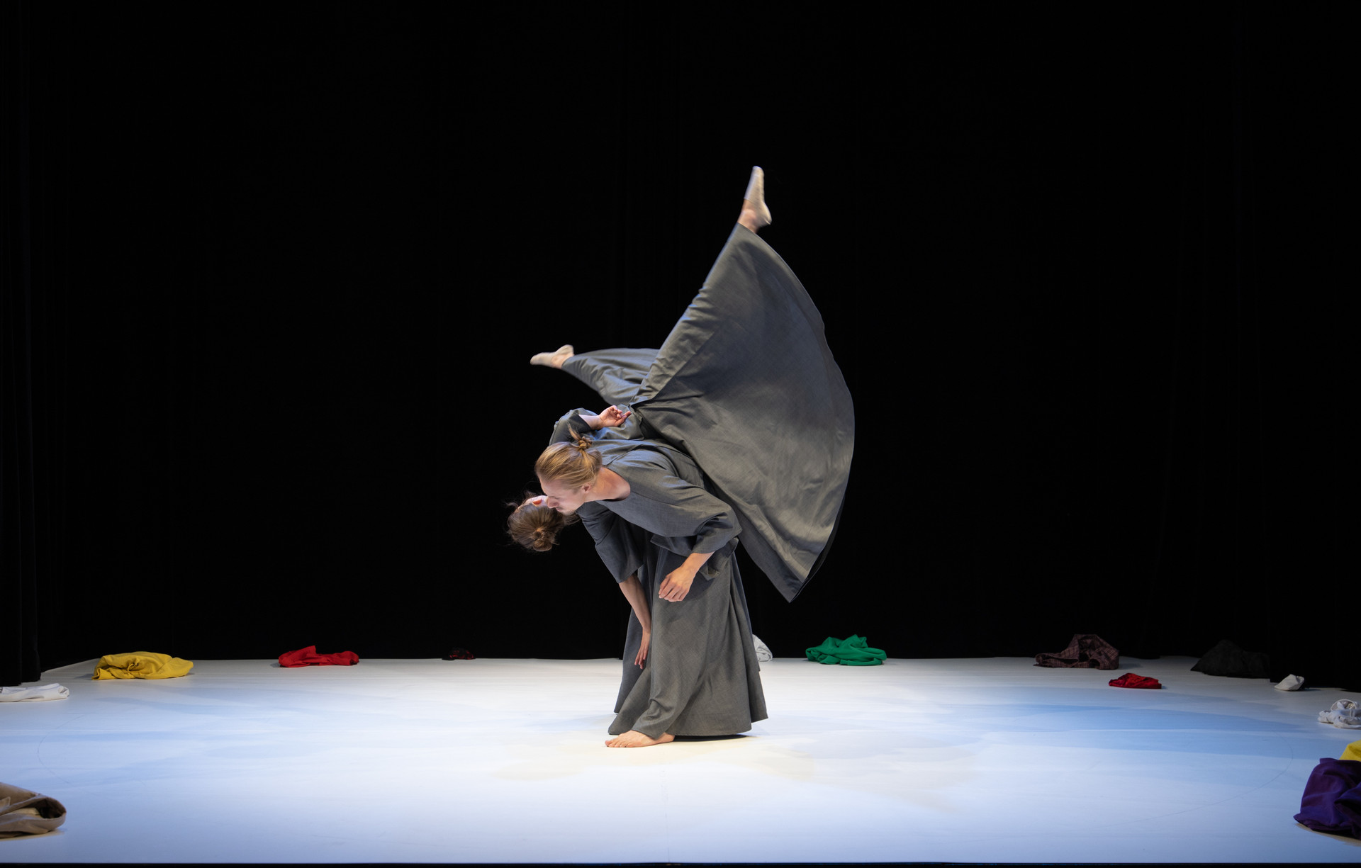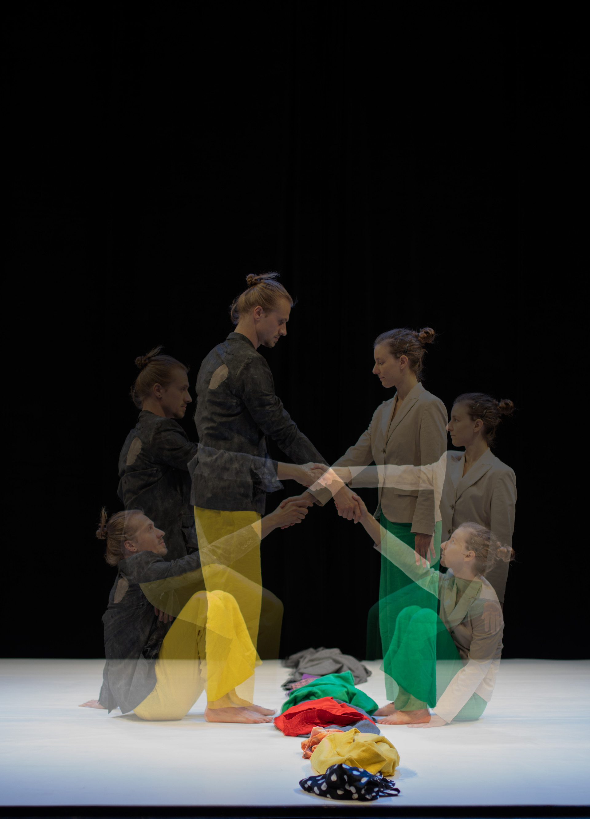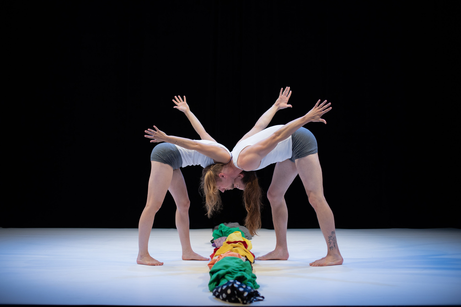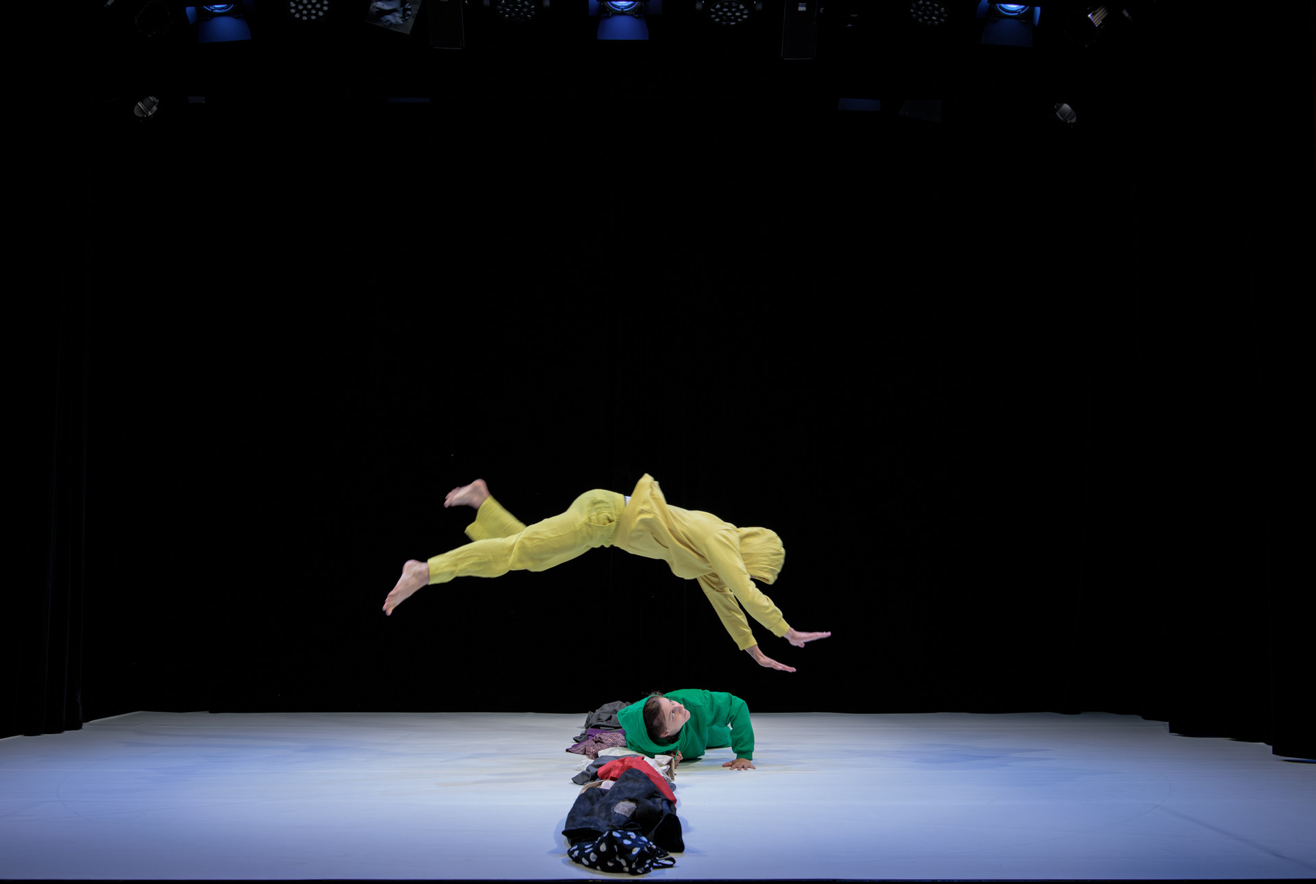 Eine fesselnde Fusion aus Physischem Theater, Akrobatik und Kampfkünsten. Gesellschaftliche Normen werden herausgefordert und hinterfragt. Die neun verschieden farbigen Kostüme sind nicht nur humorvoll, sondern auch Teil des poetischen Bühnenbilds. Zwei Figuren tauchen ein in eine Welt der Extreme, lassen Vorurteile hinter sich und entdecken ihre Harmonie. Ein vielfältiges Spektakel, das Binäres mit Schönheit und Ausgewogenheit konfrontiert.