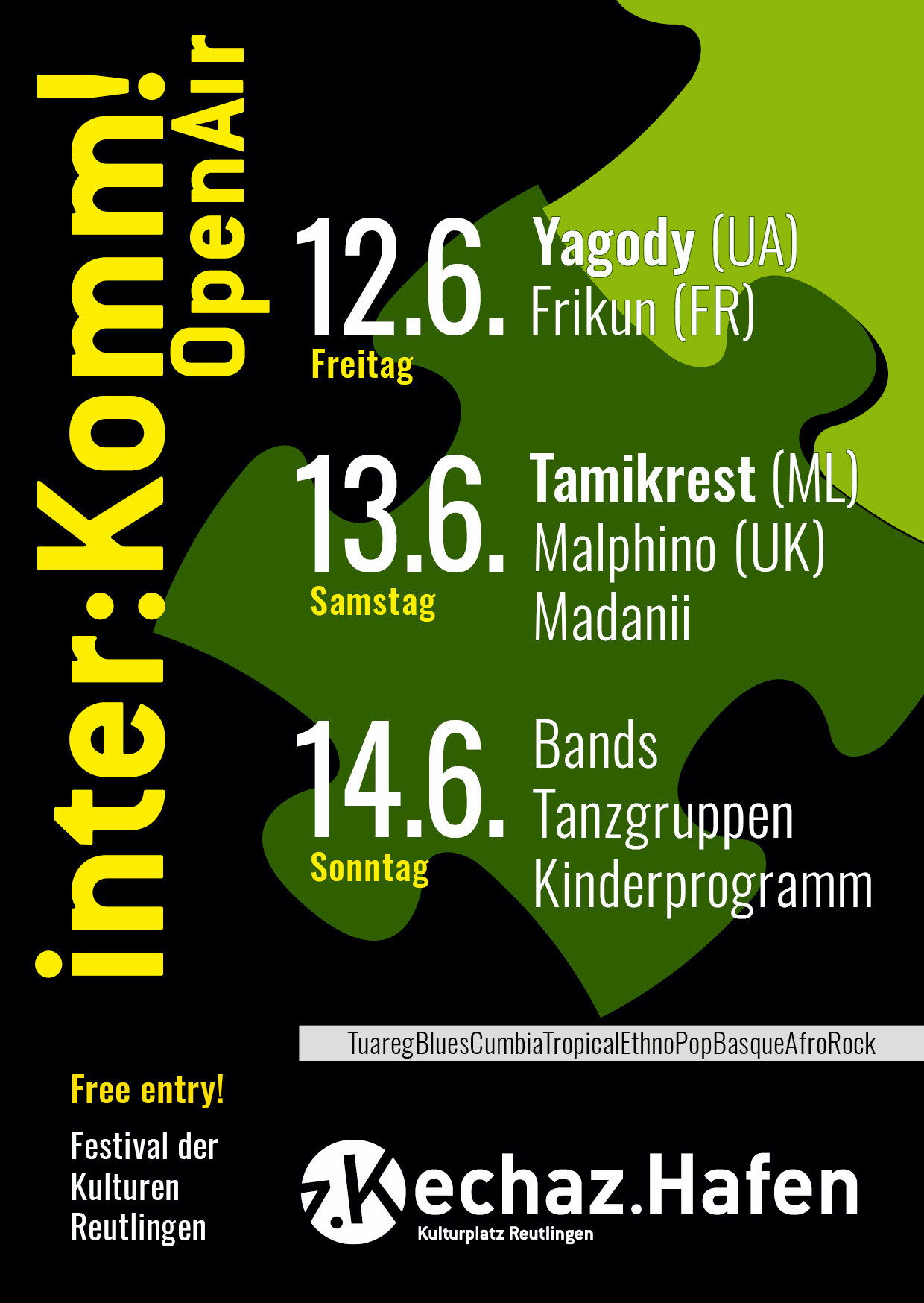 Auch zum 11. inter:Komm! Festival laden wir wieder Künstler:innen ein, die kosmopolitische Weltmusik jenseits von Klischees gestalten. Ihr Ansatz: weniger reine Folklore, mehr musikalischer Eigensinn abseits des Mainstreams. Das Ergebnis ist eine lebendige Mischung aus Folkore, Rock, Ska, Jazz und Elektro – vertraut und doch überraschend anders.