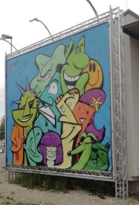 MANGO alias Felix Schwarz ist ein Tübinger Streetart-Künstler. Inspiriert durch seine deutsch-peruanischen Wurzeln lebt er sich seit bald 20 Jahren auf den unterschiedlichsten Leinwänden aus. Die comichaften Figuren, Köpfe und maskenartigen Gesichter sind mittlerweile sein Markenzeichen. Ob nun Graffiti, HipHop, Surrealismus, Pop Art, oder Expressionismus – satte Farben und kräftige Konturen stehen mithilfe seiner Sprühdosen im Mittelpunkt. Ob politisch motiviert, abstrakt oder fotorealistisch, immer sind seine Arbeiten ausdrucksstark und individuell. Dafür steht MANGO und genau das macht er mit seiner Kunst auch deutlich.